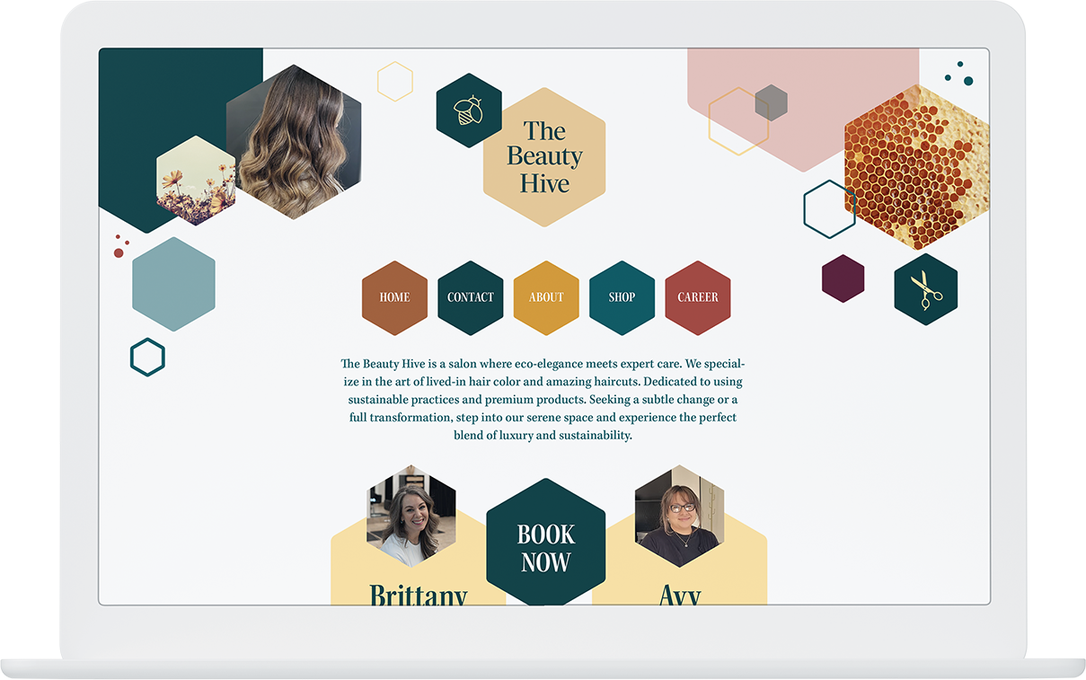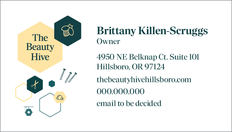 The Beauty Hive project is one borne of personal passion. A dear friend developed a hair salon, focusing on eco-elegance, expert hair care, and premium organic products. Crafting the visual branding system, elements I included are a modular logo, custom library of illustrated elements, website banners, print deliverables, as well as vinyl window decals to welcome customers at the door.