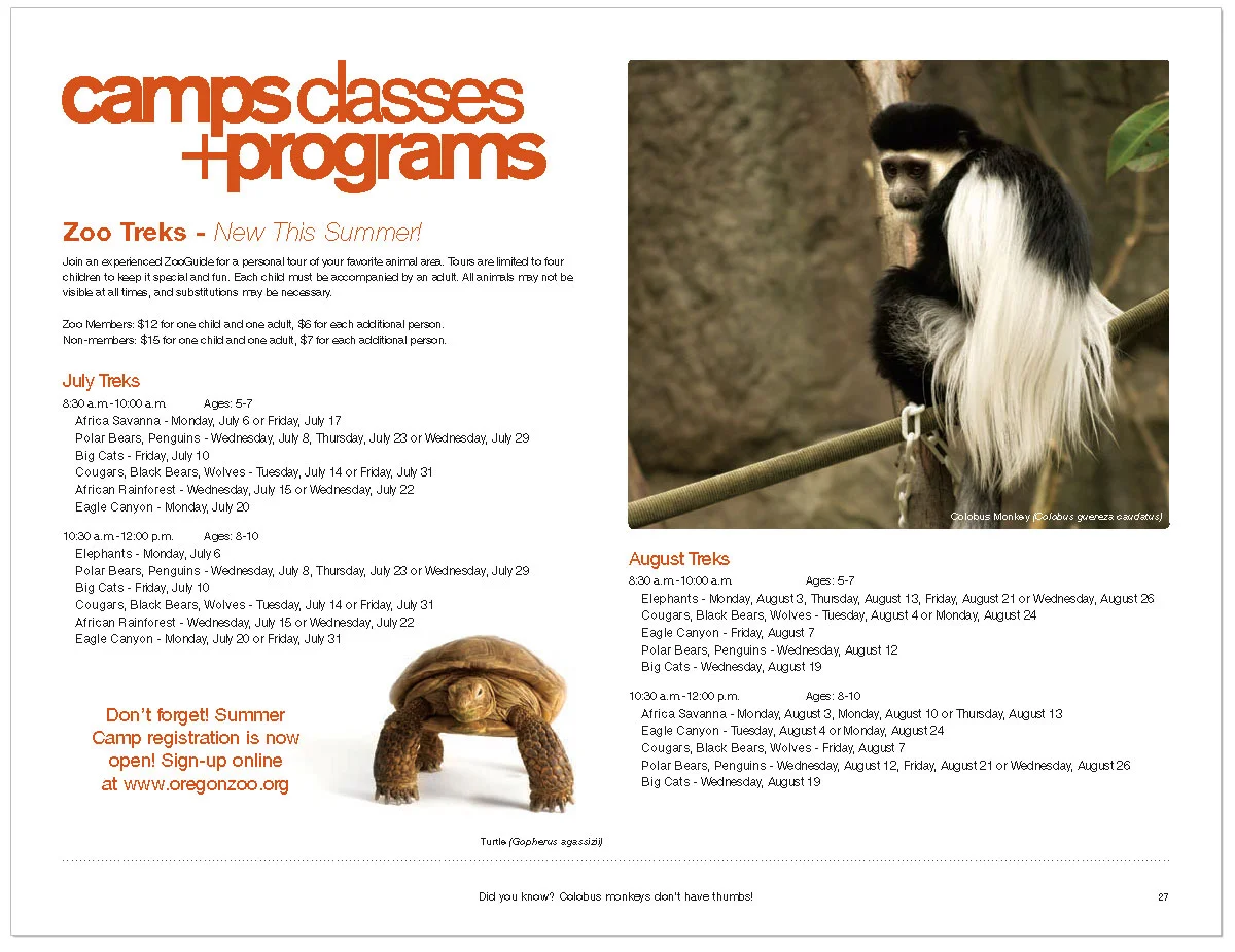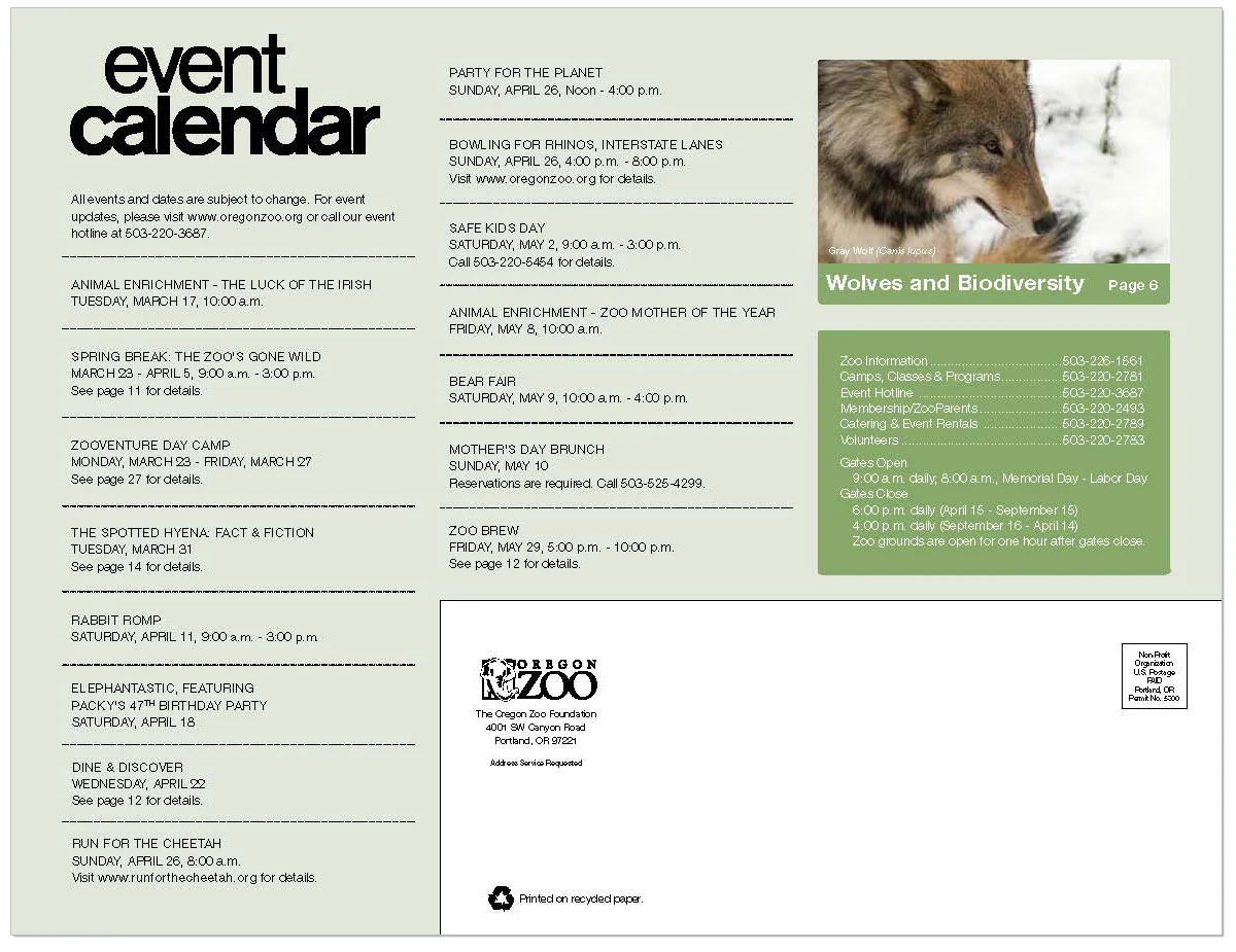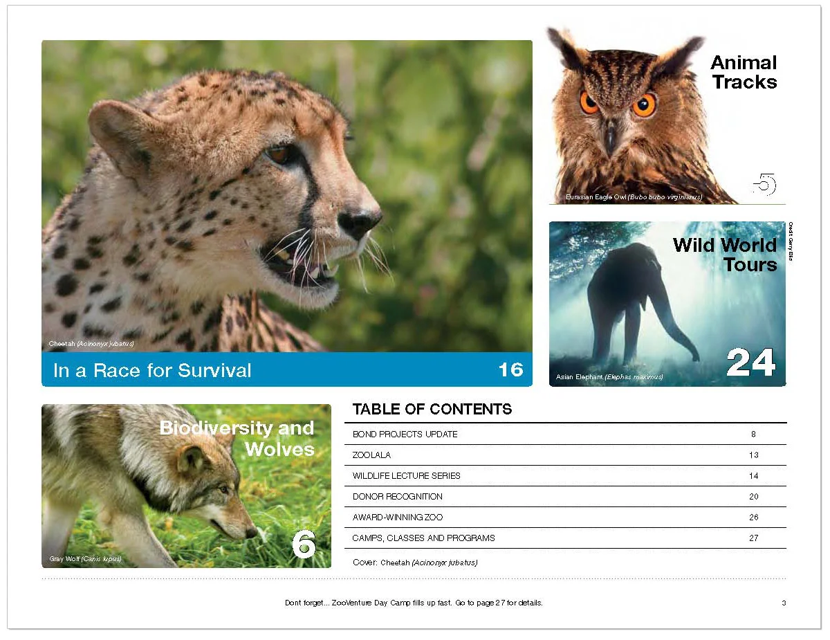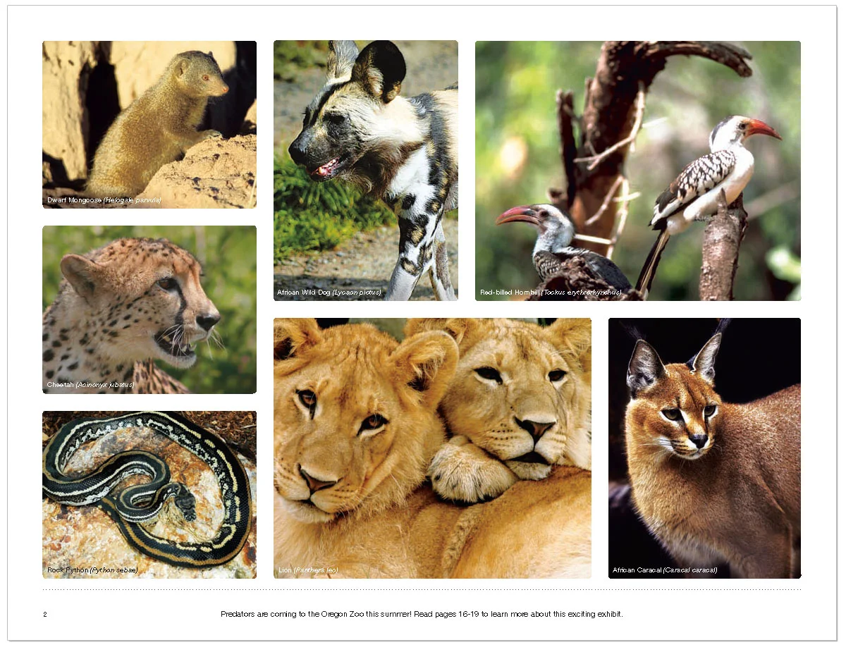 A redesign of the quarterly, Oregon Zoo member magazine, while working for Blackfish Creative, in Portland Oregon. The magazine provided news, events, animal updates and zoo activities to Oregon Zoo members in a lively and engaging format.
