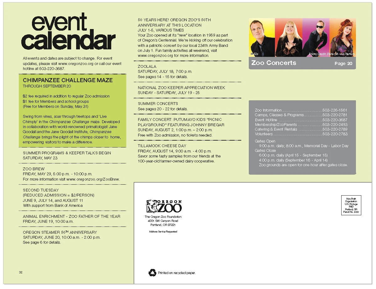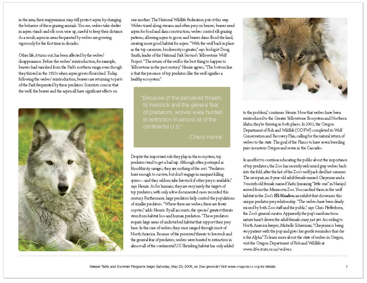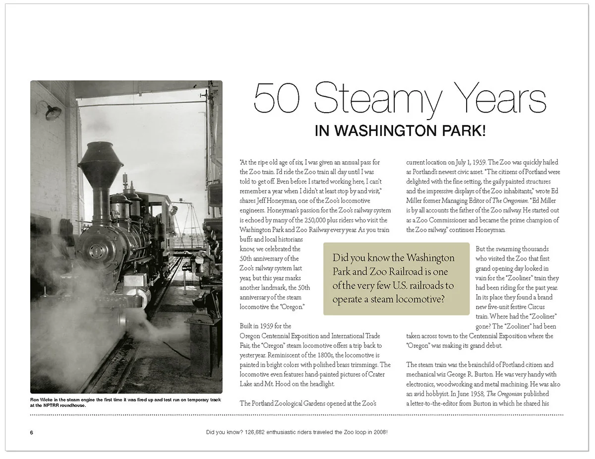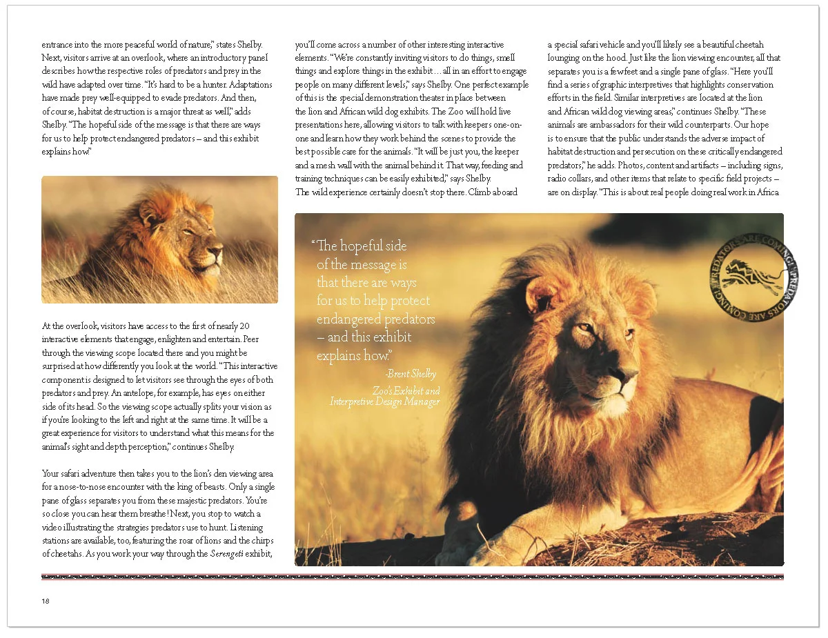 A redesign of the quarterly, Oregon Zoo member magazine, while working for Blackfish Creative, in Portland Oregon. The magazine provided news, events, animal updates and zoo activities to Oregon Zoo members in a lively and engaging format.